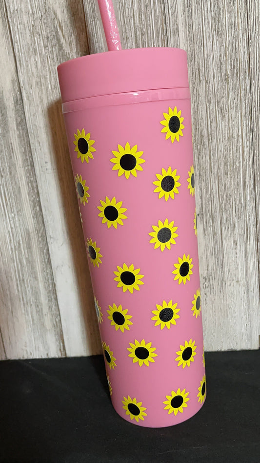 Pink & Sunflowers 17oz Acrylic Tumbler
