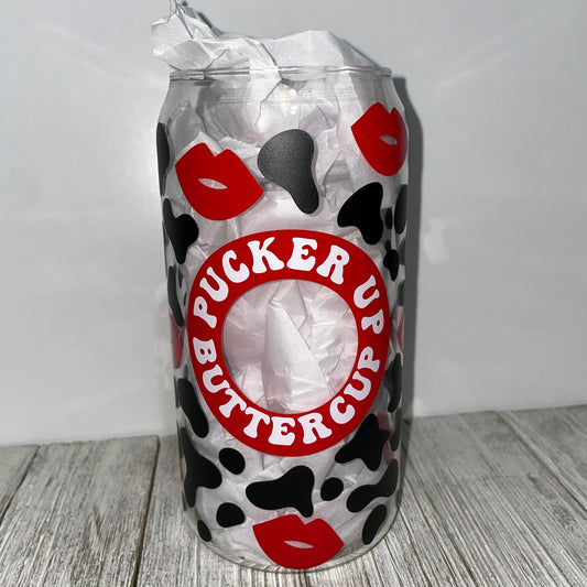 Pucker Up Buttercup Cow Print Glass Cup | 16oz Libby Glass Cup