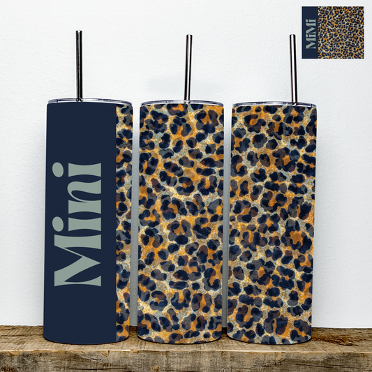 Mama/Mini/MiMi/Nana Navy Blue Leopard Print Tumbler | Stainless Steel Double Wall Tumbler