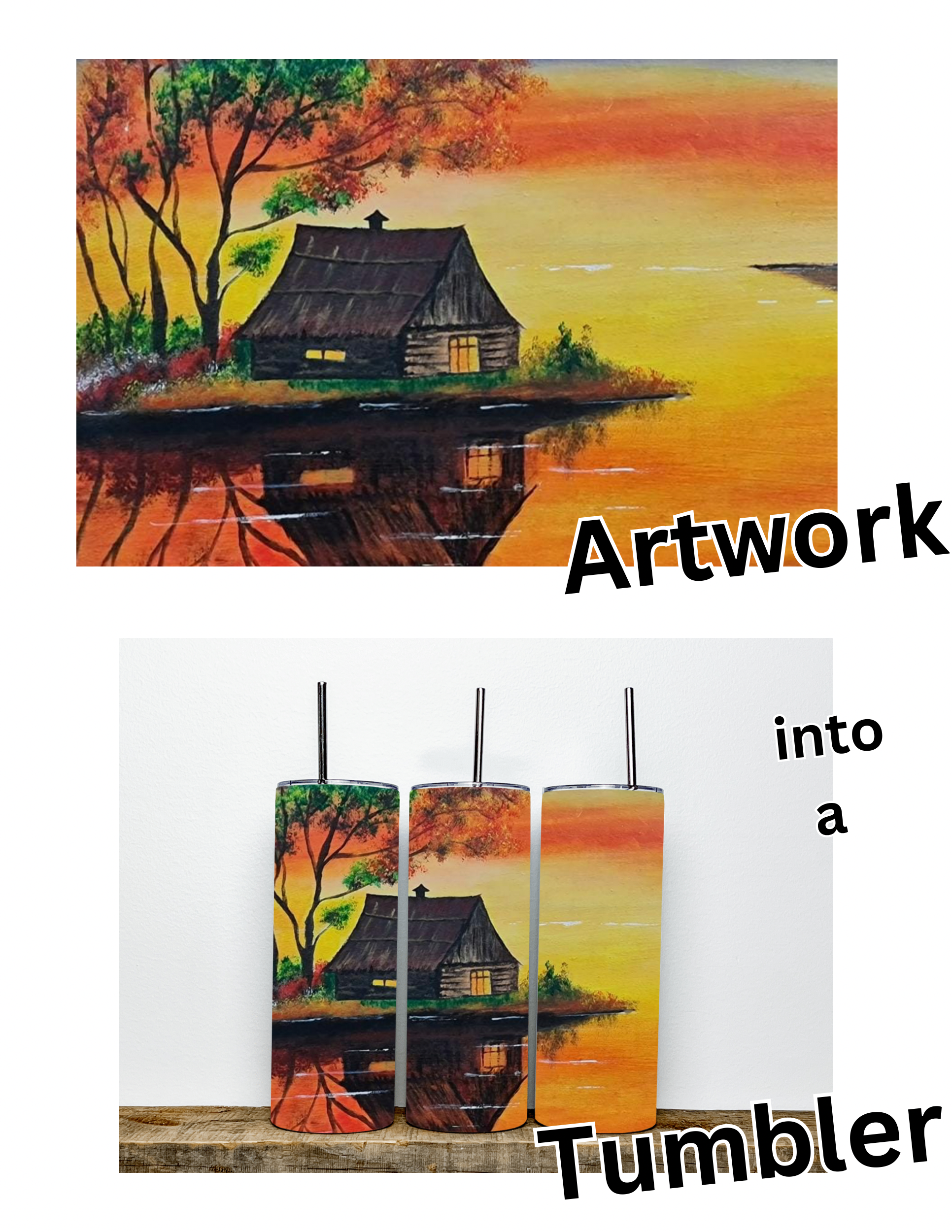 Take a sheet of paper 8.5" x 11" and create artwork on it. Once your artwork is finished, the next step is to scan or photograph the 8.5" x 11" sheet of paper. For best results, scan it and email it in. After that, you can wait for the sentimental 20oz stainless steel tumbler that will be created with your artwork.
