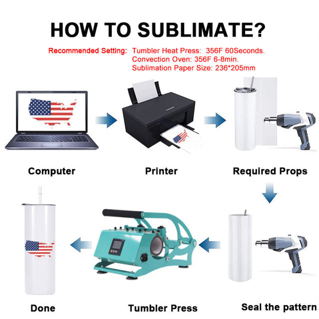 Our Sublimation Tumblers are coated with a premium sublimation finish, allowing customization via heat press or oven. The vibrant colors that appear on the water bottle are sure to stand out, unlike standard white tumblers. Create unique designs and decals for yourself or as gifts for people special to you-such as bridesmaids, bachelors, or birthdays. Perfect for both commercial and DIY projects.