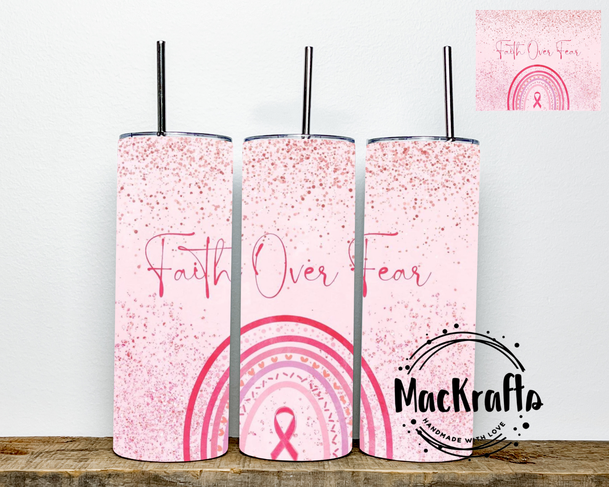 Breast Cancer Awareness Tumbler | Faith Over Fear | Stainless Steel Double Wall Tumbler