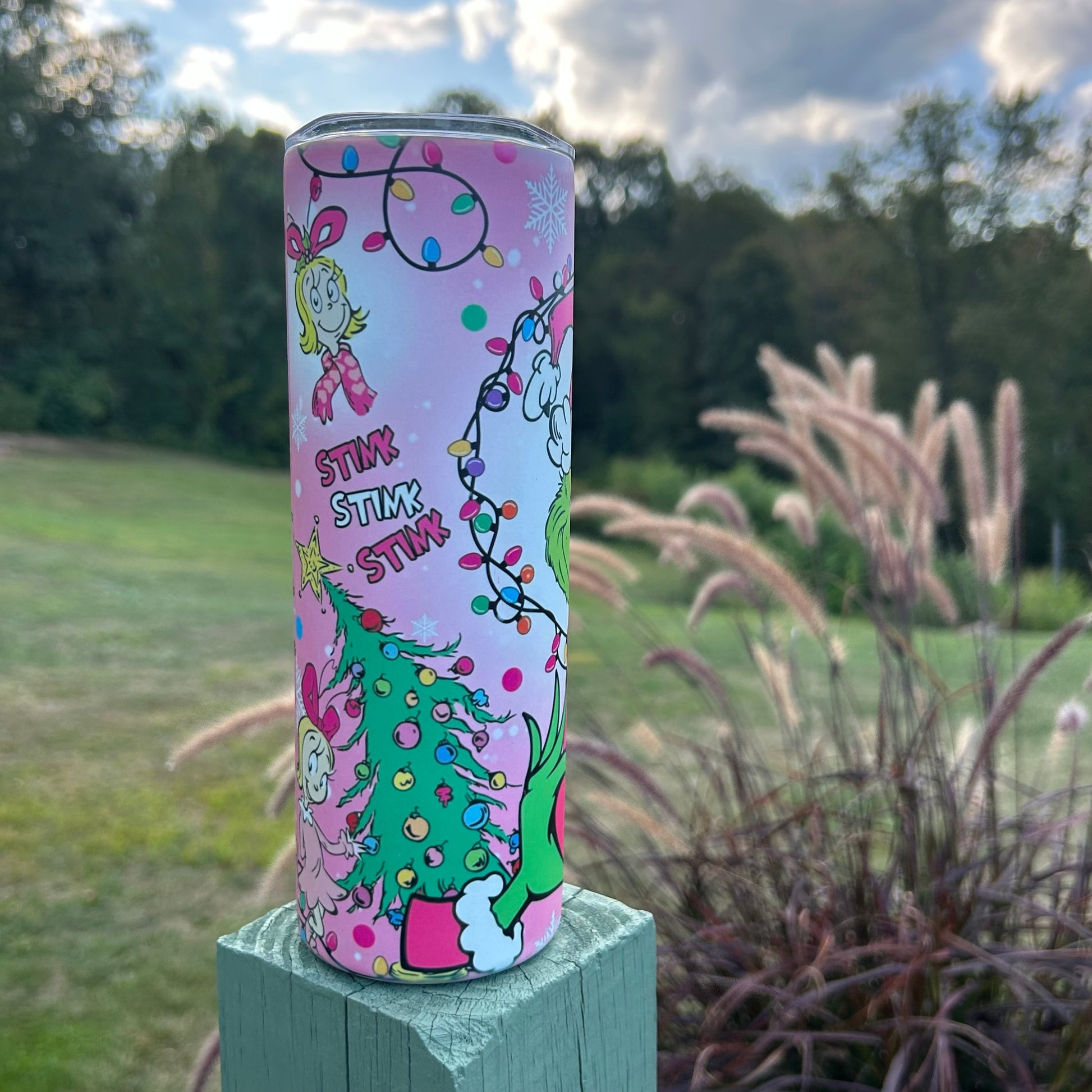Green Guy Pink Christmas Tumbler | Stainless Steel Double Wall Tumbler