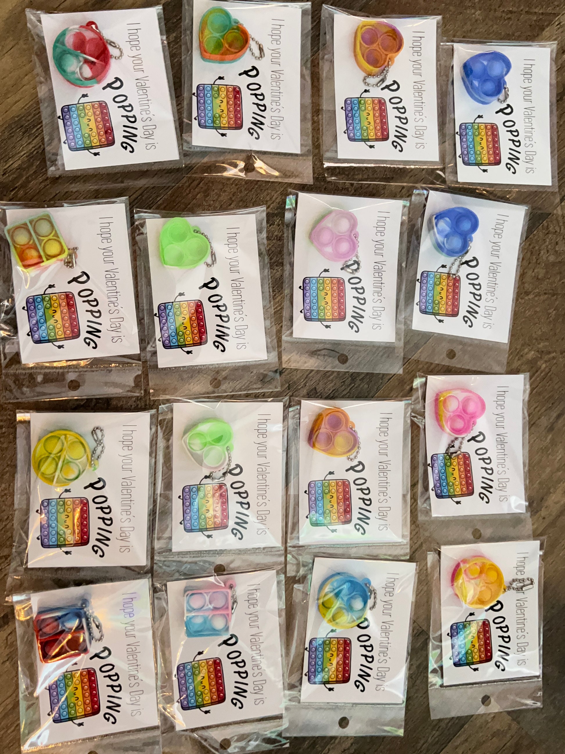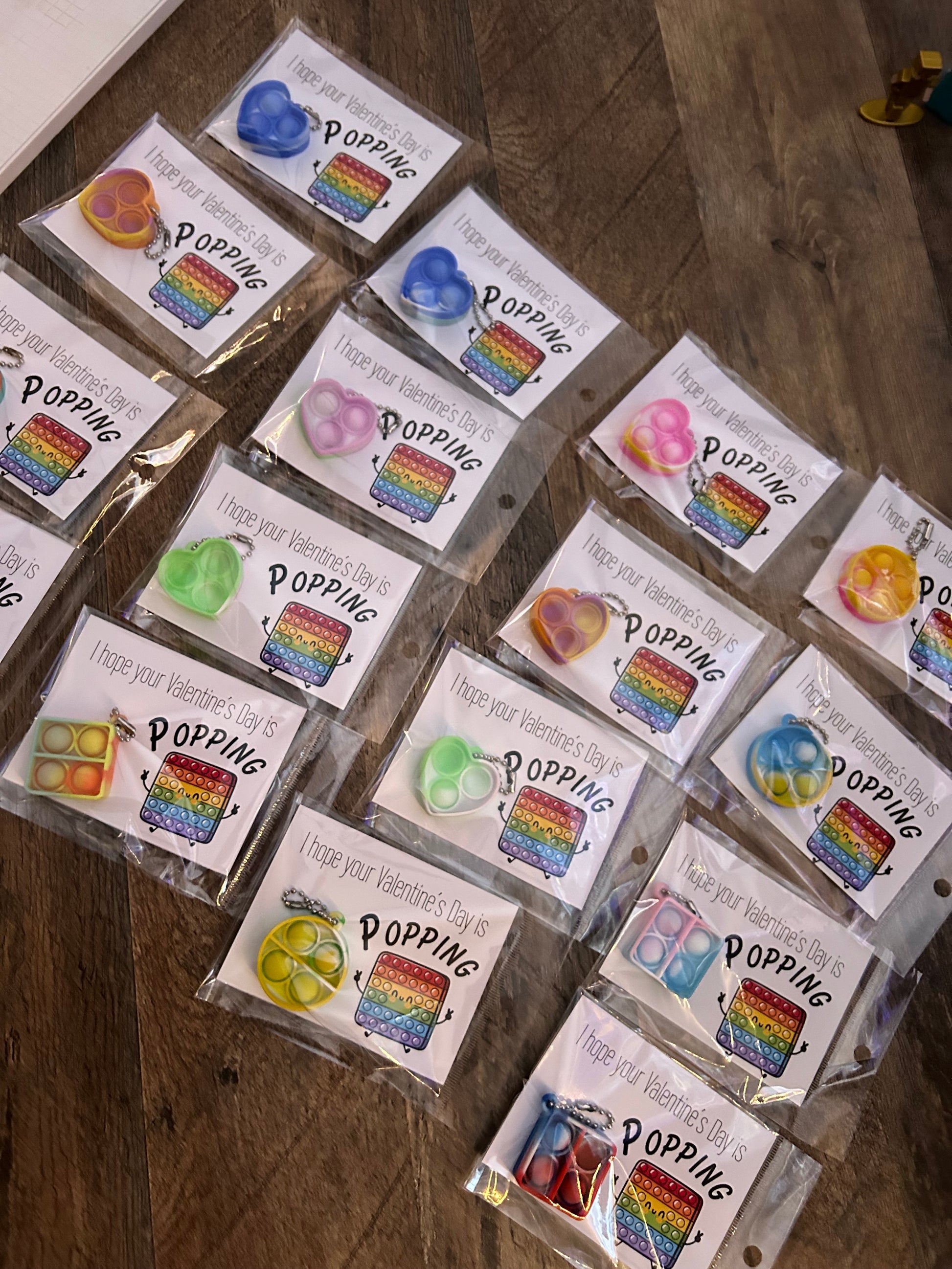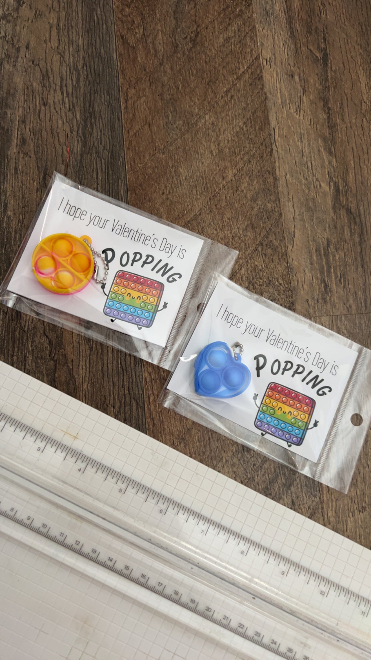 Print on 4x6 paper of your choice. Cut along the line of the print, add your pop it to it and finish it off by packaging it. I used resealable 4 inch plastic bags.